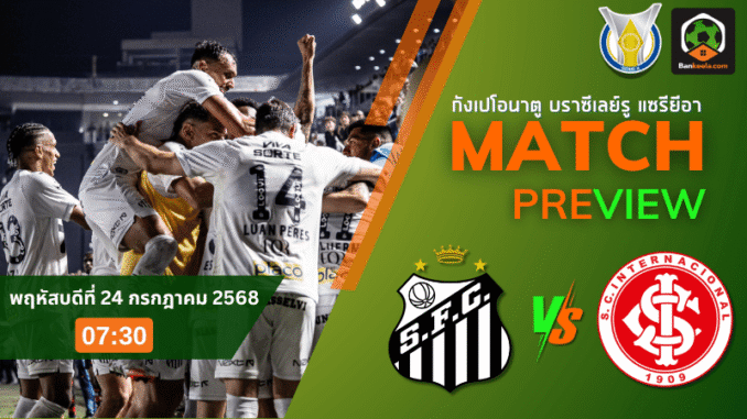 ค่ำคืนนี้แฟนบอลบราซิเลียนเตรียมระทึกใจอีกครั้ง เมื่อ ซานโต๊ส เปิดสนามอูร์บาโน่ คัลเดร่า ต้อนรับการมาเยือนของ อินเตอร์นาซิอองนาล ในศึกกังเปโอนาโต บราซีเลย์รู เซเรีย อา วันพฤหัสบดีที่ 24 กรกฎาคม 2568 เวลา 07:30 น. โดยราคาต่อรองวันนี้ออกมาที่เจ้าบ้านต่อเพียง 0.25 ซึ่งตาม ตารางบอลวันนี้ นี่ถือเป็นเกมที่เดิมพันสูงมาก เพราะทั้งคู่ต้องการแต้มเพื่อหนีโซนอันตรายให้ได้