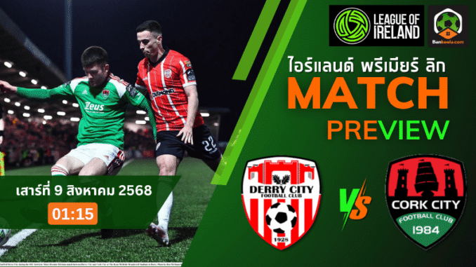 เดือดแน่ศึกไอร์แลนด์! เดอร์รี่ ซิตี้ เปิดบ้านรอถล่ม คอร์ก ซิตี้ คืนนี้ 01:15 ตามตารางบอลวันนี้