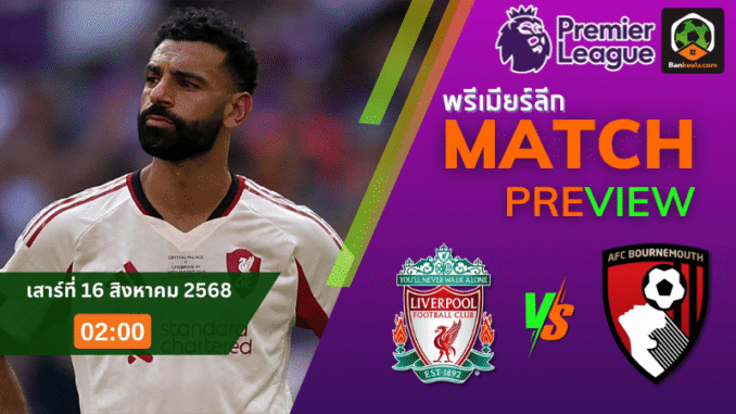 ค่ำคืนวันเสาร์ที่ 16 สิงหาคม 2568 นี้ “แอนฟิลด์” จะลุกเป็นไฟ เมื่อ ลิเวอร์พูล เตรียมเปิดบ้านรับการมาเยือนของ บอร์นมัธ เอเอฟซี ในศึก พรีเมียร์ลีก อังกฤษ นัดเปิดสนามเวลา 02:00 น. ซึ่งถือเป็นเกมที่หลายฝ่ายจับตามองไม่น้อย ด้วยความพร้อมของทั้งสองทีมที่ต่างอยู่กันคนละฝั่งของสมดุลเกมรุก–เกมรับ โดยเฉพาะเจ้าถิ่นที่ดูมีภาษีดีกว่าทุกกระเบียดนิ้วจากชื่อชั้น, ขุมกำลัง และฟอร์มก่อนเปิดฤดูกาล