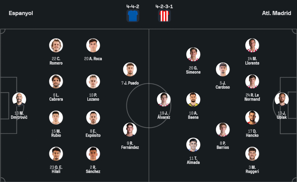 ของกุนซือจอมเขี้ยว ดิเอโก้ ซิเมโอเน่ แม้จะต้องเช็คฟิต โฆเซ่ มาเรีย คิเมเนซ แต่โดยรวมถือว่าอยู่ในสภาพทีมที่สมบูรณ์ พร้อมใช้งาน 3 แข้งใหม่อย่าง อเล็กซ์ บาเอน่า, ดาบิด ฮานโก้ และ จอนนี่ การ์โดโซ่ โดยจะส่ง ฮูเลี่ยน อัลวาเรซ เป็นตัวทีเด็ดในแดนหน้า ลุยในระบบ 4-2-3-1 ซึ่งเป็นแผนที่ทีมถนัดและวางใจได้