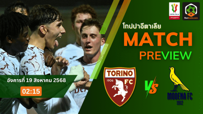 ฟุตบอลถ้วยใหญ่เมืองมะกะโรนี “โคปปา อิตาเลีย” ค่ำคืนวันอังคารที่ 19 สิงหาคม 2568 เวลา 02:15 น. แฟนบอลทั่วอิตาลีจับตาไปที่สนาม สตาดิโอ โอลิมปิโก้ กรานเด โตริโน่ เมื่อเจ้าถิ่น โตริโน่ ทีมดังจากเซเรีย อา จะเปิดศึกกับ โมเดน่า สโมสรจากเซเรีย บี เกมนี้ราคาบอลเปิดมาให้ โตริโน่ ต่อ 1 ลูก ซึ่งแฟนบอลและนักลงทุนต้องรีบจดลงใน ตารางบอลวันนี้ เพราะถือเป็นเกมที่มีสีสันทั้งเรื่องศักดิ์ศรีและโอกาสลุ้นเข้ารอบ