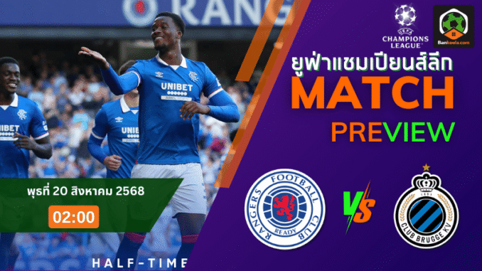 คืนวันพุธที่ 20 สิงหาคม 2568 เวลา 02:00 น. ไอบร็อกซ์ สเตเดี้ยมจะกลายเป็นหม้อเดือดเมื่อ กลาสโกว์ เรนเจอร์ส เปิดบ้านรับมือ คลับบรูซ ในศึกยูฟ่าแชมเปียนส์ลีก รอบเพลย์ออฟ เลกแรก เกมที่เดิมพันด้วยตั๋วรอบแบ่งกลุ่มใบงามพร้อมโบนัสความเชื่อมั่นของทั้งสองสโมสร ตามราคาเปิดหน้าเสื่อ “เสมอ” ใครคมกว่าเก็บความได้เปรียบกลับไปก่อนทันที นี่คือหนึ่งในคู่ไฮไลต์ที่แฟนบอลต้องวงไว้ใน ตารางบอลวันนี้ เพราะทั้งสองทีมต่างคมทั้งแท็กติกและความดุดันจากฟอร์มล่าสุด