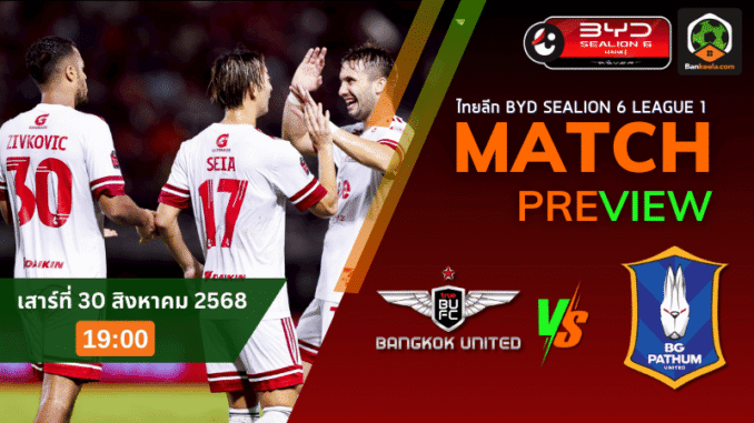เมื่อค่ำคืนวันเสาร์ที่ 30 สิงหาคม 2568 เวลา 19:00 น. แฟนบอลทั่วประเทศต้องไม่พลาดศึกใหญ่บน ตารางบอลวันนี้ เมื่อ “แข้งเทพ” ทรู แบงค็อก ยูไนเต็ด เปิดรังต้อนรับการมาเยือนของ “เดอะ แรบบิท” บีจี ปทุม ยูไนเต็ด เกมนี้นอกจากศักดิ์ศรีแล้วยังเป็นเกมสำคัญที่มีผลต่ออันดับหัวตารางโดยตรง ราคาบอลล่าสุดยกให้เจ้าถิ่นเป็นต่อควบหนึ่งลูก แสดงถึงความมั่นใจจากฟอร์มในบ้านที่แข็งแกร่งและการเจอกันล่าสุดที่เหนือกว่าชัดเจน