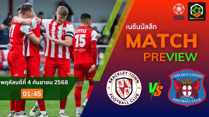 คืนวันพฤหัสบดีที่ 4 กันยายน 2568 เวลา 01:45 น. แฟนบอลเตรียมลุ้นกันสุดตัวเมื่อ แบล็คเลย์ ทาวน์ ทีมอันดับ 10 ของตาราง เตรียมเปิดรังต้อนรับการมาเยือนของ คาร์ไลล์ ยูไนเต็ด ทีมอันดับ 7 ที่ยังมีเป้าหมายเกาะกลุ่มบนของลีกให้ได้ เกมนี้บ่อนเปิด ราคาบอลวันนี้ แบบ “เสมอ” (0.0) ซึ่งสะท้อนว่าทั้งสองทีมถูกมองว่าสูสีกันสุด ๆ งานนี้แฟนบอลต่างจับตาว่าใครจะคว้า 3 แต้มสำคัญไปครอง โดยแมตช์นี้ถูกใส่ชื่ออยู่ใน ตารางบอลวันนี้ ที่ไม่ควรพลาดด้วยประการทั้งปวง