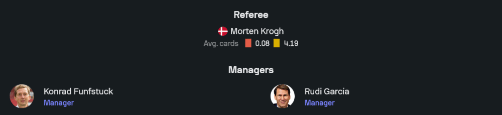รูดี้ การ์เซีย ขนโครง 4-2-3-1 หรือ 4-3-3 ที่คุ้นมือ แดนหลังมี นายประตูมือหนึ่ง ติโบต์ กูร์กตัวส์ กลับมายืนเฝ้าเสา คู่เซ็นเตอร์วาง เซโน เดบาสต์ จับคู่ อาร์ตูร์ เตอาเต้ ฟูลแบ็กขวา โธมัส มูนิเยร์ ซ้ายเป็น มักซิม เดอคูย์เปอร์ ตรงกลางหมุนใช้ ยูรี ตีเลอม็องส์ คุมจังหวะ ประสาน ฮานส์ วานาเกน และ อเล็กซิส ซาเลอมาเกอร์ส ส่วนแถวสองวางสามตัวรุกสุดจี๊ด เลอันโดร ทรอสซาร์ด ทางซ้าย, เฌเรมี โดกู ทางขวา และ “คีย์แมน” เควิน เดอ บรอยน์ ยืนเป็นเมกเกอร์หลังหอก ข้างหน้าเลือกใช้ ลัวส์ โอเพนดา ที่สปีดและการจบสกอร์เฉียบขาด พร้อมทะลุทะลวงแนวลึกเจ้าถิ่นได้ตลอด