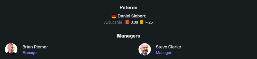 ภายใต้การคุมทีมของ ไบรอัน รีเมอร์ ข่าวดีคือพวกเขาได้ อันเดรส คริสเตนเซ่น หายเจ็บกลับมาเสริมแนวรับ แต่ยังคงไม่มี คริสเตียน อีริคเซ่น ที่ถูกถอดชื่อออกไปในชุดนี้ ระบบที่คาดว่าจะใช้คือ 4-2-3-1 โดยมี ปิแอร์ ฮอยเบิร์ก และ มอร์เท่น ฮุลมันด์ คุมเกมกลางสนาม แดนหน้าวาง อันเดอร์ส เดรเยอร์, มิคเกล ดามส์การ์ด และ อันเดรียส สคอฟ โอลเซ่ ปั้นเกมรุกสนับสนุน ราสมุส ฮอยลุนด์ ศูนย์หน้าดาวดังที่พร้อมระเบิดฟอร์ม