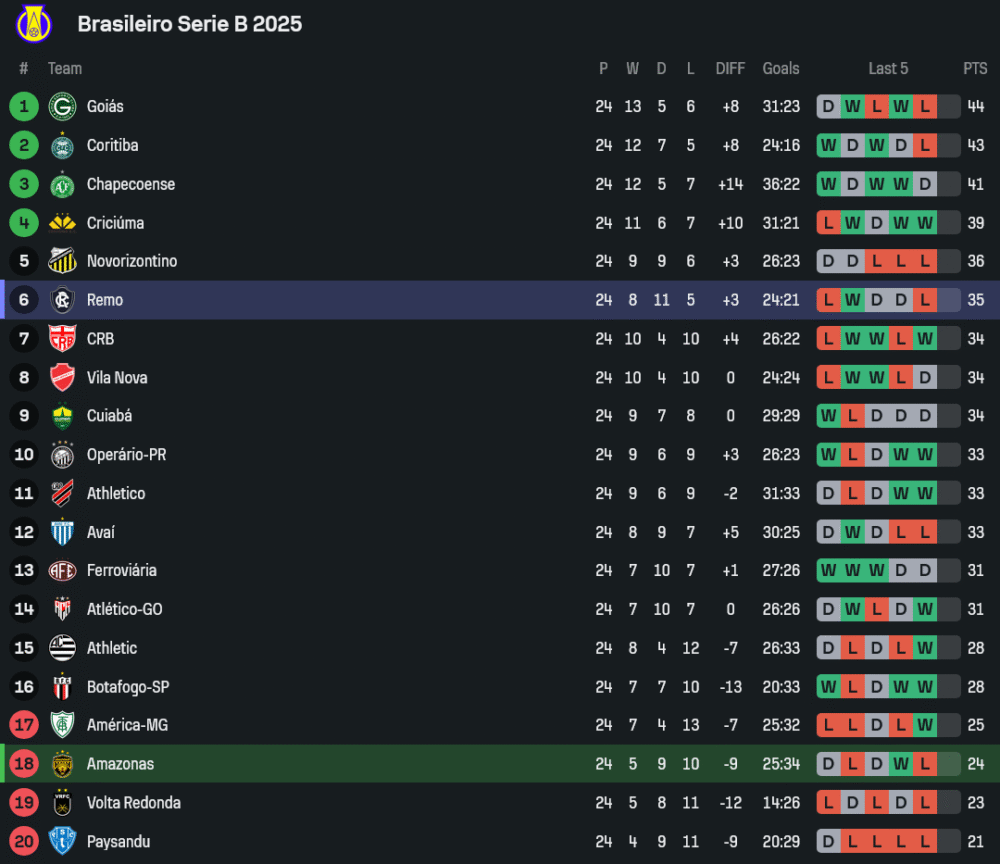 ค่ำคืนเสาร์ที่ 6 กันยายน 2568 เวลา 03:00 น. (ตามโปรแกรมท้องถิ่น) ที่อารีน่า คอนด้า แฟนบอล ซีรีบี บราซิลเตรียมเจอเกมที่ “มีอะไรมากกว่าสามแต้ม” เมื่อ อมาโซนาส ทีมหนีตายอันดับ 18 เปิดบ้านรับ เรโม่ ผู้มาเยือนอันดับ 6 ศึกนี้ชี้ทิศทางเส้นทางทั้งฤดูกาล เพราะฝั่งเจ้าถิ่นกำลังต้องการจุดเปลี่ยนอย่างเร่งด่วน ขณะที่เรโม่อยากยึดพื้นที่หัวตารางให้มั่นคง เรตเปิดหน้าเสื่อให้เจ้าถิ่น “อมาโซนาส ต่อ 0.25(-10)” สื่อชัดว่าเกมนี้สูสี แต่ความกดดันถาโถมอยู่ฝั่งเจ้าบ้านเต็มๆ ใครไล่เปิด ตารางบอลวันนี้ คู่ดึกคู่นี้ห้ามปล่อยผ่าน