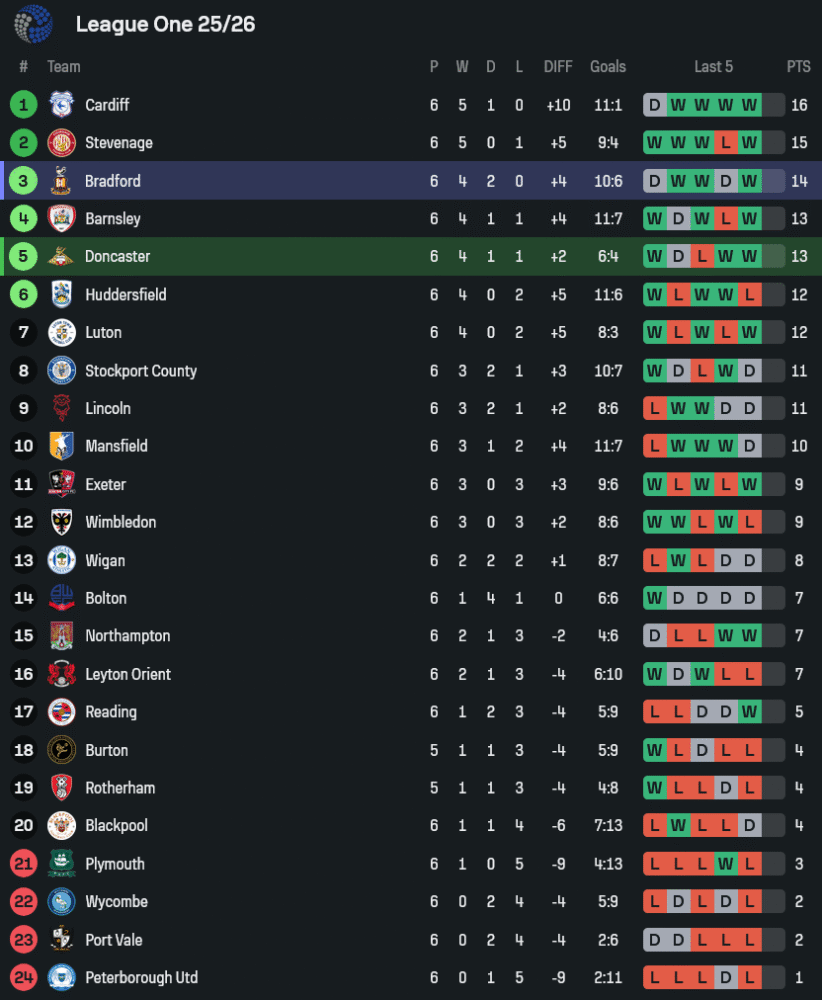 ศึก ลีกวัน อังกฤษ คืนวันเสาร์ที่ 6 กันยายน 2568 เวลา 21:00 น. แฟนบอลห้ามพลาดแมตช์เร้าใจที่สนาม อีโค-พาวเวอร์ สเตเดี้ยม เมื่อ ดอนคาสเตอร์ โรเวอร์ส ทีมอันดับ 5 เปิดรังรับการมาเยือนของ แบรดฟอร์ด ซิตี้ อันดับ 3 เกมนี้นอกจากจะเป็นการวัดศักดิ์ศรี ยังมีผลโดยตรงต่อการลุ้นพื้นที่เพลย์ออฟอีกด้วย โดยเรตราคาบอลล่าสุดเปิดมาที่เจ้าถิ่น ดอนคาสเตอร์ ต่อ 0.25 (-10) ถือว่าเป็นตัวเลขที่บ่งบอกชัดว่าคู่นี้สูสีสุดขีด เหล่าเซียนบอลที่ติดตาม ตารางบอลวันนี้ ต่างจับตาด้วยความตื่นเต้น