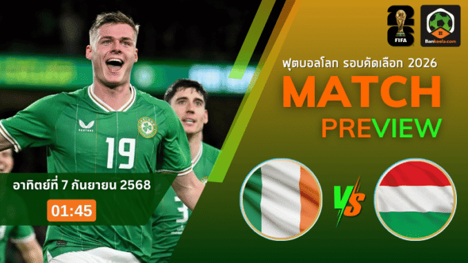 ค่ำคืนวันอาทิตย์ที่ 7 กันยายน 2568 เวลา 01:45 น. ที่อาวิว่า สเตเดี้ยม กรุงดับลิน เสียงเชียร์จะถาโถมใส่สนามจนสะเทือนเมื่อ “เด็กยักษ์เขียว” ไอร์แลนด์ เปิดบ้านรับการมาเยือนของ “แม็กยาร์” ฮังการี เกมแรกของฟุตบอลโลก 2026 รอบคัดเลือกกลุ่ม F ซึ่งทั้งสองชาติรู้ทางกันดีจากเกมอุ่นเครื่องเมื่อปีก่อน นัดนี้ปักหมุดใน ตารางบอลวันนี้ เป็นคู่ที่แฟนบอลห้ามกะพริบตา เพราะราคาเปิด “เสมอ” บ่งบอกชัดว่าเป็นแมตช์ที่วัดกันด้วยรายละเอียด ความเข้มข้นของแท็กติก และคมในจังหวะสุดท้ายล้วนๆ ใครพลาดน้อยกว่ามีสิทธิ์เปิดฉากคว้าสามแต้มสำคัญ