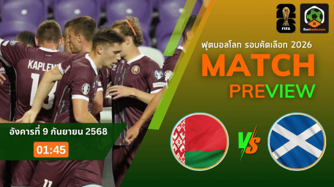 ค่ำคืนอังคารที่ 9 กันยายน 2568 เวลา 01:45 น. เวที คัดบอลโลก 2026 โซนยุโรป กลุ่ม C พร้อมเดือดที่สนามกลาง ซีทีอี-อารีน่า ประเทศฮังการี เมื่อ “ขาว–แดง” เบลารุส ทีมอันดับ 4 เปิดรั้วรับมือ “วิสกี้อาร์มี่” สกอตแลนด์ อันดับ 3 เกมนี้อุณหภูมิในสนามการันตีร้อนระอุแม้อยู่บนแผ่นดินยุโรปตะวันออก ออกราคาให้ทัพแดนวิสกี้เป็นต่อ 1.0 (ลบห้า) สะท้อนความเหนือชั้นทางคุณภาพตัวผู้เล่นและความลงตัวเชิงแท็กติก ใครเปิด ตารางบอลวันนี้ อยู่ ขีดเส้นใต้คู่นี้ไว้หนา ๆ เพราะแต้มเดียวอาจเปลี่ยนสมการลุ้นเข้ารอบของกลุ่มทันที
