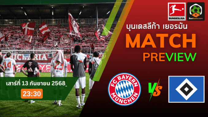 คืนวันเสาร์ที่ 13 กันยายน 2568 เวลา 23:30 น. ศึกบุนเดสลีกา เยอรมัน นัดที่สายตาทุกคู่จับจ้อง “เสือใต้” บาเยิร์น มิวนิค จ่าฝูงของลีก เปิดรังอลิอันซ์ อารีน่า รับการมาเยือนของ ฮัมบูร์ก ทีมน้องใหม่ที่กำลังดิ้นรนหนีการตกต่ำ ราคาบอลเปิดมาที่ บาเยิร์น ต่อ 3 ลูกเต็มๆ ถือว่าเป็นหนึ่งในคู่เดือดที่ถูกบันทึกใน ตารางบอลวันนี้ และคอบอลทั่วโลกต่างรอคอยผลลัพธ์