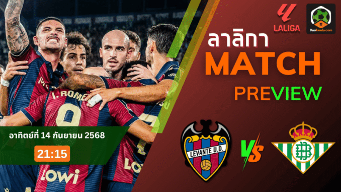 ศึก ลาลีกา สเปน คืนวันอาทิตย์ที่ 14 กันยายน 2568 เวลา 21:15 น. แฟนบอลต้องไม่พลาด! เพราะที่สนามซิอูดาด เด บาเลนเซีย เจ้าถิ่น เลบานเต้ ทีมอันดับ 17 จะเปิดบ้านปะทะกับ เรอัล เบติส ทีมอันดับ 8 โดยเรตเปิดมาที่ เบติส ต่อ ปป.-5 ซึ่งถือว่าไม่ใช่งานง่ายของทีมเยือนแน่นอน เกมนี้ถูกจับตามองอย่างมากใน ตารางบอลวันนี้ ว่าใครจะคว้าสามแต้มสำคัญ