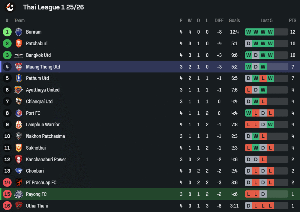 ศึก ไทยลีก 2025/26 นัดที่ 4 กำลังจะระอุ เมื่อ ระยอง เอฟซี ทีมอันดับ 15 ของตาราง เปิดบ้านรอรับการมาเยือนของรองจ่าฝูงอย่าง เมืองทอง ยูไนเต็ด ที่สนามดับบลิวเอชเอ ระยอง สเตเดียม วันอาทิตย์ที่ 14 กันยายน 2568 เวลา 18.00 น. ถ่ายทอดสดผ่าน AIS PLAY และ Monomax งานนี้ถือเป็นแมตช์ที่แฟนบอลต้องปักหมุดใน ตารางบอลวันนี้ เพราะทั้งสองทีมต่างมีเป้าหมายชัดเจน เจ้าถิ่นหวังปลดล็อกชัย ขณะที่ทีมเยือนต้องการ 3 แต้มเพื่อลุ้นเบียดแชมป์