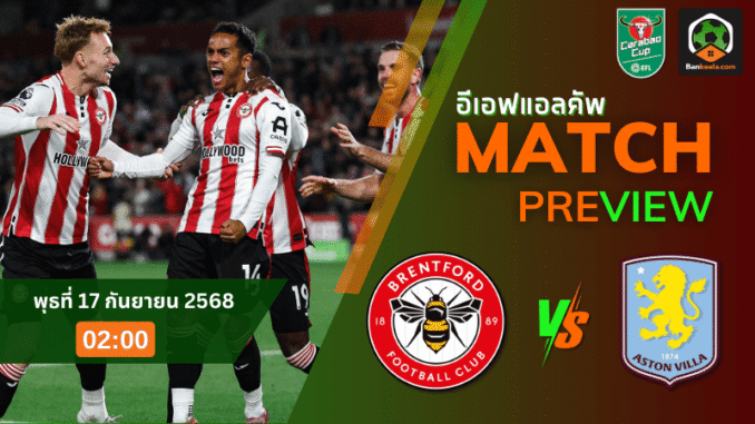 ค่ำคืนวันพุธที่ 17 กันยายน 2568 เวลา 02:00 น. จีเท็ค คอมมูนิตี้ สเตเดี้ยมจะลุกเป็นไฟเมื่อ เบรนท์ฟอร์ด จัดทัพต้อนรับ แอสตัน วิลล่า ในศึก คาราบาวคัพ รอบนี้ กระสุนลูกหนังนัดกลางสัปดาห์ที่เดิมพันด้วยศักดิ์ศรีและทางลัดสู่ความสำเร็จฤดูกาลใหม่ ราคาหน้าเสื่อเปิด “ราคาพร้อมเพย์” แบบเสมอให้วัดกันไปเลยว่าใครแน่กว่า ซึ่งยิ่งเพิ่มความมันส์ให้แฟนบอลที่กำลังเช็กโปรแกรมจาก ตารางบอลวันนี้ เกมนี้ถูกปักหมุดเป็นคู่ต้องดู เพราะทั้งสองสโมสรต่างต้องการโมเมนตัมก่อนโปรแกรมลีกหนักๆ ที่รออยู่