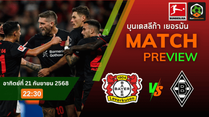 คืนวันอาทิตย์ที่ 21 กันยายน 2568 เวลา 22.30 น. ตาม ตารางบอลวันนี้ แฟนบุนเดสลีกาต้องเปิดจอรอศึกคลาสสิกแห่งลุ่มไรน์ เมื่อ ไบเออร์ เลเวอร์คูเซ่น เตรียมเปิดบ้านรับ โบรุสเซีย มึนเช่นกลัดบัค ที่ไบอารีน่า เกมนี้แรงกดดันพุ่งสูงทั้งสองฝั่ง เจ้าบ้านอยากต่อยอดความมั่นใจหลังฟอร์มเริ่มติดสปีด ส่วนทีมเยือนต้องการสามแต้มเพื่อหนีโซนล่างของตาราง ผู้ตัดสินคือ เฟลิกซ์ สไวเออร์ ซึ่งขึ้นชื่อเรื่องวินัยการคุมเกม ใบเหลืองเฉลี่ยต่อแมตช์สูงพอตัว จังหวะปะทะกลางสนามจึงมีให้ลุ้นเพียบ ราคาบอล ล่าสุดขยับให้เลเวอร์คูเซ่นต่อ “หนึ่งลูกถ้วน” สะท้อนความเหนือชั้นจากฟอร์มและสถิติยามเฝ้ารัง