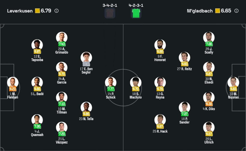 รูปเกมมีแนวโน้มออกมาแบบบีบพื้นที่สูง เลเวอร์คูเซ่นจะคุมเทมโปตั้งแต่กลางสนามเพราะมี ทิลล์มันน์ คอยชะลอ–เร่ง และใช้การเคลื่อนที่ของ เบน เซกีร์ ดึงเซ็นเตอร์กลัดบัคหลุดตำแหน่ง ก่อนปล่อยให้ ชิค ปิดบัญชี การหายไปของอันดริชกับเฟร์นันเดซทำให้เกมชนตรงกลางอาจไม่แข็งเท่าเดิม แต่เจอคู่แข่งที่การเปลี่ยนจากรับเป็นรุกยังหนืด น่าจะเอาอยู่ ด้านกลัดบัคต้องหวังการสวนกลับจากความเร็วของโอโนราต์และการแทงคิลเลอร์พาสของเรย์น่า หากฉวยจังหวะได้อาจมีเซอร์ไพรส์ ทว่าคุณภาพกรอบเขตโทษยังเป็นรอง