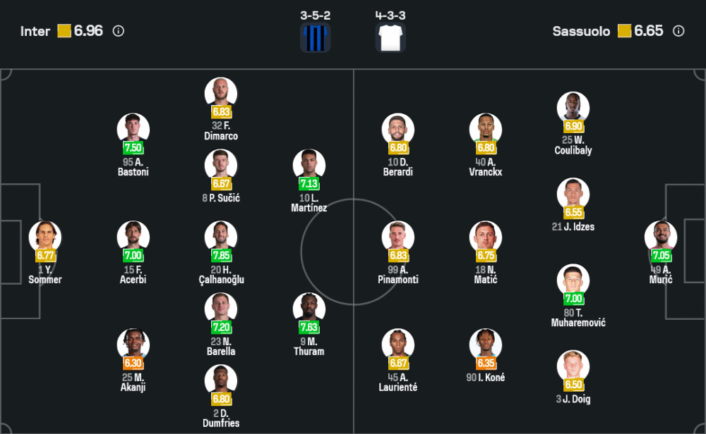 ถอดสมการสไตล์การเล่นออกมา เกมนี้น่าจะเป็นหนังคนละม้วน อินเตอร์จะครองบุกแบบไหลบ่า ใช้บอลสั้นสลับบอลยาวเข้าหาช่องหลังแบ็กซ้าย-ขวาของซัสซูโอโล่ แดนกลางเจ้าถิ่นเหนือกว่าในคุณภาพและการคุมเทมโป โดยเฉพาะ ชัลฮาโนลู ที่วางบอลยาวข้ามไลน์ได้อันตราย เมื่อบวกการสอดแทรกของ บาเรลล่า จังหวะสองจึงพร้อมจู่โจมตลอด ส่วนทีมเยือนต้องหวังความเฉียบคมของ เบราร์ดี้ กับ ลอรีย็องเต ในจังหวะสวนกลับ และลูกตั้งเตะที่อาจเปลี่ยนเกมได้ อย่างไรก็ดี ในแง่ของการ วิเคราะห์บอล หากไม่มีอะไรพลิกล็อก ความหนักแน่นและรายละเอียดเล็ก ๆ น้อย ๆ ของอินเตอร์—ตั้งแต่การแย่งบอลแดนสองจนถึงการปิดพื้นที่ในกรอบ—น่าจะทำให้เกมไหลไปตามทางของเจ้าบ้าน