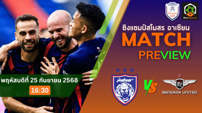 ฟุตบอลชิงแชมป์สโมสรอาเซียน ฤดูกาล 2025/26 กลุ่มบี นัดที่สอง วันพฤหัสบดีที่ 25 กันยายน 2568 เวลา 16:30 น. แฟนบอลต้องจับตาเมื่อ ยะโฮร์ ดารุล ทักซิม แชมป์มาเลเซีย เปิดรังสุลต่าน อิบราฮิม สเตเดียม รับมือ ทรู แบงค็อก ยูไนเต็ด ตัวแทนจากไทยลีก เกมนี้ลงตารางถ่ายทอดครบเครื่อง ทั้งฟรีทีวีและสตรีมมิ่ง ใครวางคิวใน ตารางบอลวันนี้ ไว้แล้ว เตรียมเปิดจอรอชมได้เลย บรรยากาศแน่นอนว่าดุเดือด เพราะต่างฝ่ายต่างต้องการแต้มเพื่อยึดหัวตาราง โดยภาพรวมกระแสหน้าเสื่อยกให้เจ้าบ้านต่อ “พอมีน้ำหนัก” จากฟอร์มยิงกระจายและเสียงเชียร์ที่โหมกระหน่ำทั้งสนาม