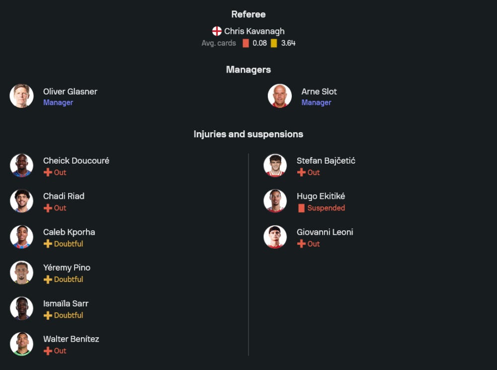 เกมนี้เป็นศึกที่สมศักดิ์ศรีระหว่างทีมฟอร์มดีทั้งคู่ เจ้าบ้าน พาเลซ เล่นในรังแบบไม่เกรงกลัวใคร โดยเฉพาะเกมรับที่เหนียวแน่นและเปลี่ยนจังหวะสวนกลับได้ดี ขณะที่ทีมเยือน ลิเวอร์พูล มาพร้อมความมั่นใจสุดขีด การเข้าทำหลากหลายและจบสกอร์เฉียบคม แถมตัวหลักพร้อมรบทุกตำแหน่ง จากการ วิเคราะห์บอล บ้านกีฬา มองว่าเกมนี้หงส์แดงจะครองเกมบุกตลอด 90 นาที ส่วนพาเลซจะเน้นรับลึกและรอโต้ แต่หากโดนบุกต่อเนื่อง โอกาสพังทลายมีสูง และด้วยความเฉียบคมของแนวรุก ลิเวอร์พูลน่าจะปิดจ็อบได้สำเร็จ