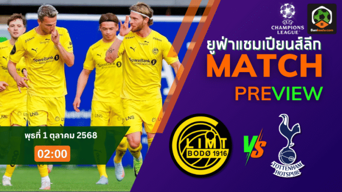 คืนวันพุธที่ 1 ตุลาคม 2568 เวลา 02:00 น. อุณหภูมิอาร์กติกที่บ็อดโฮส์จะไม่ทำให้ความร้อนของเกมลดลงแม้แต่น้อย เมื่อ โบโด กลิมท์ เปิดบ้านรับการเยือนของ ท็อตแน่ม ฮ็อทสเปอร์ ในศึก ยูฟ่าแชมเปียนส์ลีก รอบลีกสเตจ นัดสอง คู่นี้ถูกจิ้มเป็นเกมไฮไลต์ใน ตารางบอลวันนี้ เพราะต่างฝ่ายต่างต้องการสามแต้มสุดสำคัญ เจ้าถิ่นพกสปิริตกลับมาจากผลแบ่งแต้มกับสลาเวีย ปราก ส่วนไก่เดือยทองของโค้ชโธมัส แฟรงค์ กำลังคึกจากการชนะบียาร์เรอัล นัดนี้ราคาเปิดหน้าเชียร์ให้สเปอร์สบุกต่อ ปป. แต่บนดินแดนหิมะ อะไรก็เกิดขึ้นได้