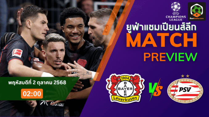 ค่ำคืนแชมเปียนส์ลีกที่เมืองเลเวอร์คูเซ่นเตรียมระเบิดอารมณ์ลูกหนัง เมื่อ “ห้างยา” เลเวอร์คูเซ่น เปิดบ้านรับมือ พีเอสวี ไอนด์โฮเฟ่น คืนวันพฤหัสบดีที่ 2 ตุลาคม 2568 เวลา 02:00 น. ที่ไบ อารีน่า เรตเปิดมาเจ้าถิ่นต่อ 0.5 สะท้อนความได้เปรียบทั้งเสียงเชียร์และสภาพแวดล้อม เกมนี้สำคัญต่อการเบียดแย่งอันดับในกลุ่มแบบสุดๆ ใครเล็งโปรแกรมจาก ตารางบอลวันนี้ เตรียมตั้งปลุกได้เลย เพราะมีโอกาสเห็นเกมรุกแลกหมัดตั้งแต่นาทีแรกในเวที ยูฟ่า แชมเปียนส์ลีก