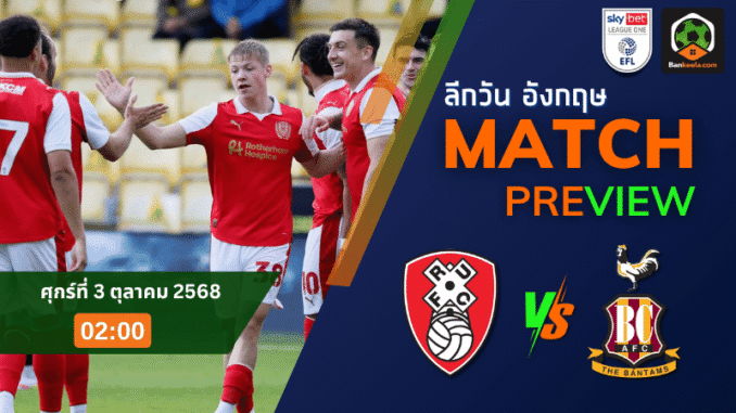 กองเชียร์ห้ามพลาด! ร็อตเธอร์แฮม เปิดรังล่าแต้มดับเครื่อง แบรดฟอร์ด เกมเดือดลีกวันค่ำคืนนี้