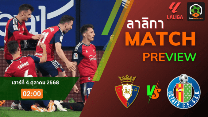 ลาลีกาคืนนี้เดือด! โอซาซูน่า เปิดรังลุ้นชัย เกตาเฟ่ หวังแต้มขยับพื้นที่หัวตาราง