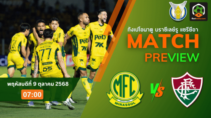 การแข่งขัน กังเปโอนาตู บราซีเลย์รู แซรียีอา คืนวันพฤหัสบดีที่ 9 ตุลาคม 2568 เวลา 07:00 น. ที่สนาม เอสตาดิโอ โฮเซ่ มาเรีย เด แคมปอส ไมอา เจ้าถิ่น มิราสโซล ทีมฟอร์มแรงน้องใหม่ที่สร้างเซอร์ไพรส์ด้วยผลงานยอดเยี่ยม เปิดบ้านต้อนรับการมาเยือนของ ฟลูมิเนนเซ่ ทีมใหญ่อีกทีมที่กำลังเรียกฟอร์มเก่งกลับมาในช่วงโค้งสำคัญของฤดูกาล เกมนี้ถือเป็นอีกหนึ่งแมตช์ชี้ชะตากลางตารางที่ทั้งสองฝ่ายต้องการชัยชนะเพื่อรักษาพื้นที่โควตาท็อปซิกซ์ และคอบอลที่อยากติดตามคู่นี้ใน ตารางบอลวันนี้ บอกเลยว่าห้ามพลาด