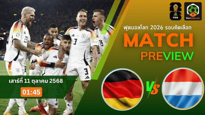 ศึกฟุตบอลโลก 2026 รอบคัดเลือก โซนยุโรป กลุ่มเอ กลับมาปะทุความมันส์อีกครั้ง คืนวันเสาร์ที่ 11 ตุลาคม 2568 เวลา 01.45 น. ตามเวลาในประเทศไทย โดยจะเป็นการดวลกันระหว่าง เยอรมนี ทีมชาติขวัญใจมหาชน เปิดบ้านรับมือ ลักเซมเบิร์ก ที่สนามพรีซีโร่ อารีน่า เมืองซินส์ไฮม์ ประเทศเยอรมนี เกมนี้ “อินทรีเหล็ก” ภายใต้การคุมทีมของ ยูเลียน นาเกลส์มันน์ ต้องการเรียกศรัทธาคืนจากแฟนบอล หลังออกสตาร์ทในรอบแบ่งกลุ่มได้ไม่เปรี้ยงเท่าที่หวัง ส่วนทีมเยือนของ เจฟฟ์ สตราสเซอร์ จะมุ่งมั่นเต็มที่เพื่อสร้างเซอร์ไพรส์แรกของกลุ่มนี้ ราคาบอลเปิดมาที่ เยอรมนีต่อ 3 ลูกเต็ม ซึ่งถือว่าจัดหนักตามมาตรฐานทีมใหญ่ สำหรับคอบอลที่กำลังไล่เช็ก ตารางบอลวันนี้ เกมนี้คืออีกคู่ที่ไม่ควรพลาดเด็ดขาด