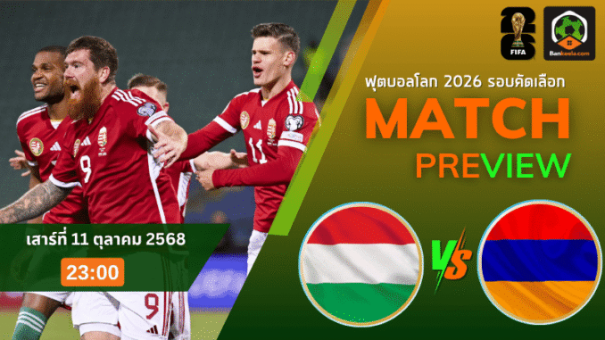 คืนวันเสาร์นี้แฟนบอลยุโรปต้องไม่พลาด เมื่อ ฮังการี เปิดบ้านต้อนรับการมาเยือนของ อาร์เมเนีย ในศึก ฟุตบอลโลก 2026 รอบคัดเลือก โซนยุโรป กลุ่ม F เวลา 23.00 น. ที่สนาม ปุสกัส อารีน่า เกมนี้สำคัญอย่างยิ่งสำหรับเจ้าถิ่นที่ยังไม่ชนะใครในรอบคัดเลือก 2 นัดที่ผ่านมา ขณะที่ทีมเยือนมาในฟอร์มเซอร์ไพรส์หลังปลดล็อกชัยได้แล้ว ความเข้มข้นของแมตช์นี้ทำให้หลายสายตาจับจ้องใน ตารางบอลวันนี้ โดยเฉพาะเมื่อ ราคาบอล เปิดมาให้เจ้าบ้านต่อ 1.5 ลูก