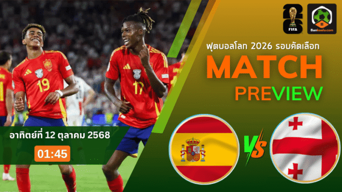 ค่ำคืนวันอาทิตย์ที่ 12 ตุลาคม 2568 เวลา 01:45 น. เตรียมมันส์ที่เอสตาดิโอ มานูเอล มาร์ติเนซ บาเลโร่ เมื่อ สเปน เปิดบ้านต้อนรับ จอร์เจีย ในฟุตบอลโลก 2026 รอบคัดเลือก โซนยุโรป กลุ่ม E เกมนี้ความหมายมหาศาลต่อเส้นทางสู่รอบสุดท้ายของทั้งสองชาติ แฟนบอลที่เช็ก ตารางบอลวันนี้ จะเห็นชื่อคู่นี้เด่นเป็นสง่าเพราะเรตหน้าเสื่อเทให้เจ้าถิ่นสุดตัวกับ ราคาบอล ที่เปิดสูงถึง 2.25 บ่งบอกชัดว่าบุกรุกของกระทิงดุกำลังโหดจริง ส่วนจอร์เจียบุกมาแบบไร้ความกลัว หวังขโมยคะแนนในค่ำคืนที่กองเชียร์เจ้าบ้านแน่นสเตเดี้ยม