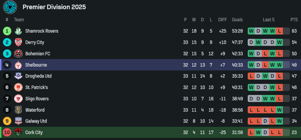 ค่ำคืนลูกหนังบนเกาะมรกตพร้อมระอุ เมื่อ คอร์ก ซิตี้ ทีมแกร่งจากแดนใต้ เปิดบ้านต้อนรับการมาเยือนของ เชลบอร์น ทีมฟอร์มจัดจ้านจากดับลิน ในศึกไอร์แลนด์ พรีเมียร์ลีก วันอังคารที่ 14 ตุลาคม 2568 เวลา 01:45 น. สนามเทอร์เนอร์ส ครอสส์จะระเบิดอารมณ์อีกครั้ง เพราะทั้งสองทีมต่างมีแรงจูงใจเต็มถัง เจ้าถิ่นต้องขยับหนีพื้นที่เสี่ยง ขณะที่อาคันตุกะลุ้นเกาะพื้นที่หัวตารางให้เหนียวแน่น จัดเตรียมป๊อปคอร์นและเปิดดูโปรแกรมใน ตารางบอลวันนี้ กันไว้ได้เลย เกมนี้ถูกแรงเชียร์จับตาเป็นพิเศษด้วยเรต ราคาบอล ล่าสุดเปิดที่เชลบอร์นต่อ 0.75 เสียงส่วนใหญ่เทใจให้ทีมเยือน แต่บอลสนามจริงไม่เคยง่าย โดยเฉพาะในบรรยากาศกดดันของเมืองท่าแดนใต้ที่ขึ้นชื่อเรื่องความดุดัน