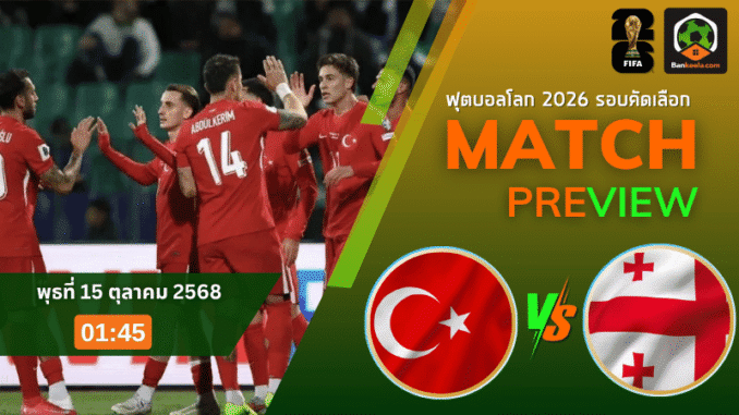 ศึกลูกหนังสุดเดือด ฟุตบอลโลก 2026 รอบคัดเลือก โซนยุโรป กลุ่ม E ค่ำคืนวันพุธที่ 15 ตุลาคม 2568 เวลา 01.45 น. ที่ โคชาเอลี่ สต๊าดยูมู แฟนบอลเตรียมมันส์ให้สุด เมื่อ ตุรกี ทีมอันดับ 2 เปิดบ้านรับมือ จอร์เจีย ทีมอันดับ 3 แมตช์นี้มีแต้มเดิมพันสูงลิ่ว ใครพลาดอาจหลุดวงโคจรลุ้นเข้ารอบทันที เรตเปิดมาให้เจ้าถิ่นต่อ ตุรกี ต่อ 1.0 ตามศักยภาพโดยรวมและเสียงเชียร์ในถิ่น “ไก่งวง” ใครรออัปเดตก่อนลงเงิน อย่าลืมเช็ก ตารางบอลวันนี้ ให้พร้อม เพราะเกมนี้รายละเอียดเล็ก ๆ น้อย ๆ มีผลกับบิลอย่างยิ่ง