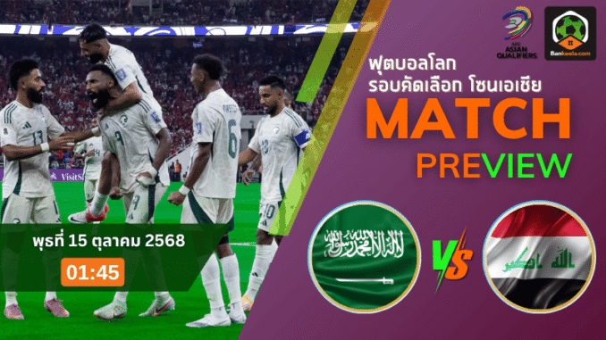 คืนพุธที่ 15 ตุลาคม 2568 เวลา 01:45 น. สนามคิง อับดุลลาห์ สปอร์ตส์ ซิตี้ สเตเดี้ยม จะลุกเป็นไฟเมื่อ ซาอุดีอาระเบีย เปิดรังรับการมาเยือนของคู่ปรับร่วมภูมิภาคอย่าง อิรัก ในศึก คัดบอลโลก 2026 รอบคัดเลือก โซนเอเชีย รอบ 4 นัดที่สอง เกมนี้มีเดิมพันระดับชี้ชะตา ใครเผลอซุ่มซ่ามอาจเสียเส้นทางไปฟุตบอลโลกรอบสุดท้ายทันที เรตเปิดหน้าเชิญชวนเจ้าถิ่นต่อครึ่งลูก ถือว่าแรงได้ใจสมศักดิ์ศรีทีมจ่าฝูงกลุ่ม A ก่อนบอลเขี่ยอย่าลืมแวะเช็ก ตารางบอลวันนี้ อัปเดตคู่นี้ให้ครบ ทั้งเวลาแข่งขันและตัวผู้เล่น เพราะรายละเอียดเล็กน้อยมีผลต่อบิลชนิดเหงื่อซึม