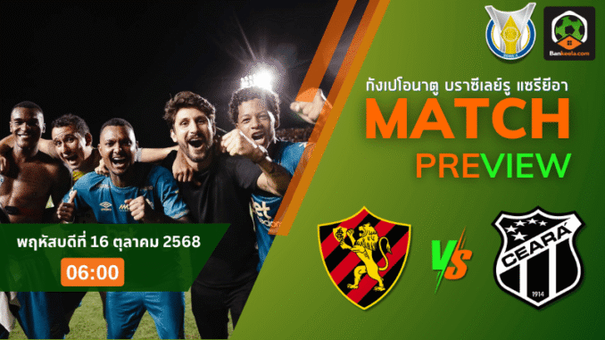กังเปโอนาตู บราซีเลย์รู แซรียีอา คืนวันพฤหัสบดีที่ 16 ตุลาคม 2568 เตรียมระอุเมื่อ สปอร์ต เรซิเฟ่ ทีมอันดับ 17 เปิดรังต้อนรับการมาเยือนของ เซอาร่า ทีมอันดับ 9 ในเวลา 06:00 น. ที่สนาม เอสตาดิโอ อเดลมาร์ ดา คอสต้า คาร์วัลโญ่ เกมนี้ไม่ใช่แค่ศึกธรรมดา แต่เป็นแมตช์สำคัญที่ทั้งสองทีมต่างต้องการชัยชนะเพื่อเป้าหมายที่แตกต่างกัน เจ้าถิ่นกำลังดิ้นหนีโซนแดง ส่วนผู้มาเยือนมีลุ้นพื้นที่บนตาราง งานนี้ความกดดันสูงและพร้อมเปิดเกมแลกแบบไม่มีถอย ซึ่งใน ตารางบอลวันนี้ ราคาบอลเปิดให้เจ้าถิ่นเป็นฝ่ายต่อ ปป ลบห้า