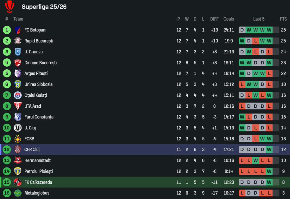 การแข่งขันฟุตบอล โรมาเนีย ลีกา 1 คืนวันศุกร์ที่ 17 ตุลาคม 2568 เวลา 00.30 น. ที่สนาม สตาดิโอนุล มูนิซิปัล แฟนบอลเตรียมพบกับเกมดวลสุดเดือดระหว่าง เอฟเค ซิกซีริด้า เมียร์คูเรีย ซิซ ทีมรองบ๊วยของตาราง เปิดบ้านต้อนรับการมาเยือนของ ซีเอฟอาร์ คลูจ์ ทีมแกร่งที่ผลงานหลุดฟอร์มช่วงหลัง ทั้งสองทีมต่างต้องการแต้มเพื่อขยับหนีโซนท้าย ตารางบอลวันนี้ จึงเดือดแน่นอน โดยเรท ราคาบอล เปิดมาที่ คลูจ์ ต่ออยู่ที่ 0.75 งานนี้จะออกหน้าไหนต้องติดตาม