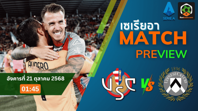 คืนวันอังคารที่ 21 ตุลาคม 2568 เวลา 01:45 น. ศึก กัลโช่ เซเรีย อา อิตาลี จะระอุขึ้นอีกครั้งเมื่อ เครโมเนเซ่ เปิดสนาม สตาดิโอ จิโอวานนี่ ซินี่ ต้อนรับการมาเยือนของ อูดิเนเซ่ ทั้งสองทีมต่างต้องการแต้มเพื่อดึงตัวเองออกจากโซนอันตราย เป็นเกมที่แฟนบอลและนักลงทุนไม่ควรพลาด เพราะจากราคาบอลวันนี้เปิดมา อูดิเนเซ่ เป็นฝ่ายต่อ ปป ซึ่งถือว่าสูสีสุดๆ งานนี้มีเดือดแน่นอน และแน่นอนว่าผู้ที่เช็ก ตารางบอลวันนี้ ต้องจดแมตช์นี้ไว้ให้ดี