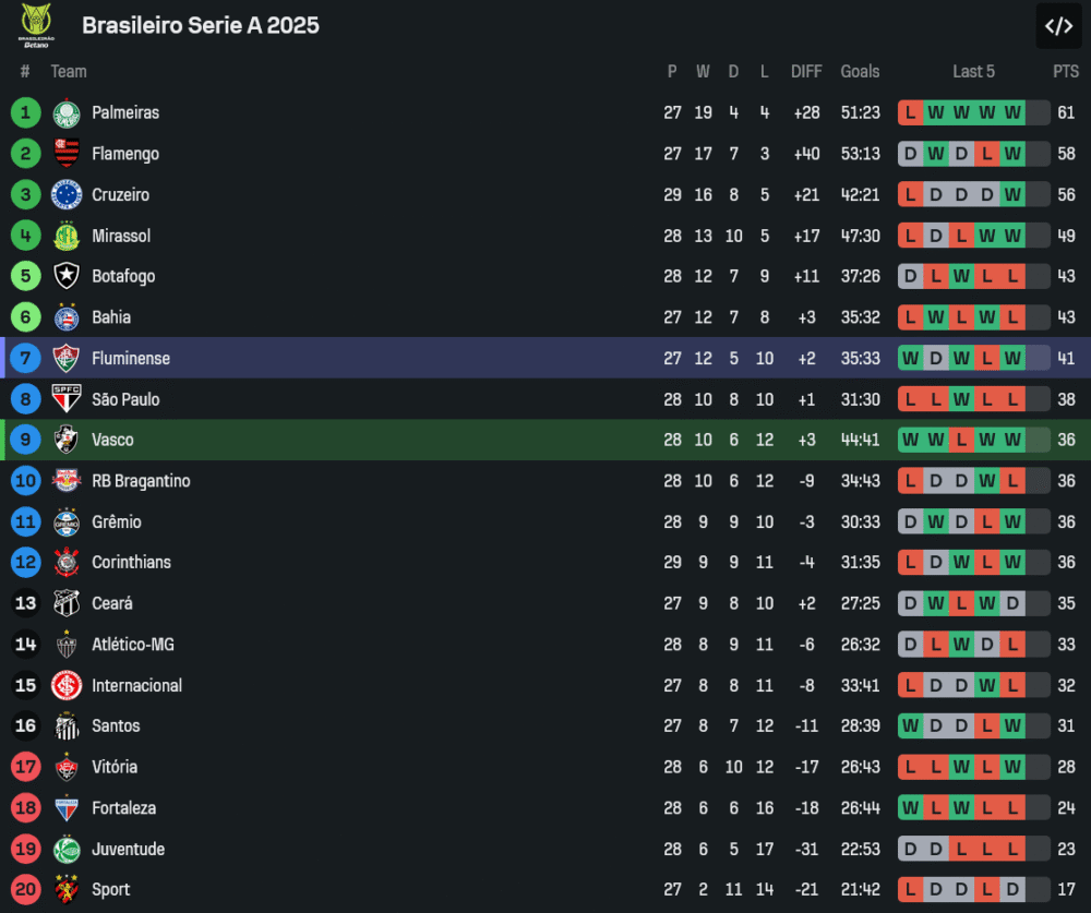 กำลังทะยานสุดขีด ชนะ 4 จาก 5 เกมหลังในลีก เกมรุกยิงกระหน่ำ โดยสามนัดเหย้าล่าสุดคว้าชัยเรียบพร้อมกดรวม 9 ประตู เสีย 3 จุดเด่นคือความดุดันช่วงต้นครึ่งหลังที่ไล่บีบสูงบังคับให้คู่แข่งผิดพลาด และเมื่อได้ประตูนำ วาสโกเล่นเกมรับทรงบล็อกกลางสนามแน่น กัดฟันปิดเกมได้บ่อยครั้ง