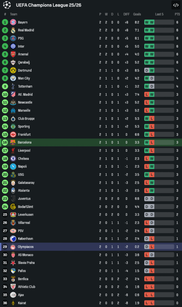 ทีมจากกรีซเพิ่งกลับมาเก็บชัยชนะได้ในลีกหลังชนะ AEL Larissa 2-0 โดยได้ประตูจาก เอล คาบี คนเดิม นับเป็นการคืนฟอร์มหลังพ่ายอาร์เซน่อลและพีเอโอเคแบบน่าเสียดายใน 2 นัดก่อนหน้า แม้พวกเขายังไม่ชนะใครในรอบลีกเฟสของยูฟ่า แชมเปียนส์ลีก แต่ก็ถือว่าเกมรุกเริ่มกลับมามีชีวิตชีวาอีกครั้ง