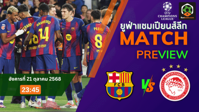 ⚽️ บาร์เซโลน่า เปิดศึก โอลิมเปียกอส ลุ้นสามแต้มล้ำค่าในถิ่น