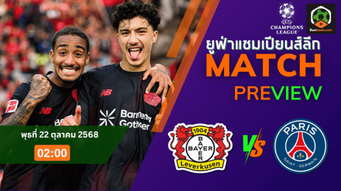 ค่ำคืนแห่งความมันส์เวทียุโรปกำลังจะมาถึง เมื่อ ไบเออร์ เลเวอร์คูเซ่น เปิดบ้านรับการมาเยือนของ ปารีส แซงต์ แชร์กแมง ในศึก ยูฟ่าแชมเปียนส์ลีก รอบลีกเฟส วันพุธที่ 22 ตุลาคม 2568 เวลา 02:00 น. ที่สนาม BayArena เกมนี้มีความสำคัญทั้งในแง่ของแต้มและศักดิ์ศรี โดยเปิด ราคาบอล ที่ เปแอสเช ต่อ 1 ลูก สำหรับใครที่กำลังเช็ก ตารางบอลวันนี้ คู่นี้คือไฮไลต์ใหญ่ประจำค่ำคืนนี้ที่แฟนบอลไม่ควรพลาดแม้แต่วินาทีเดียว