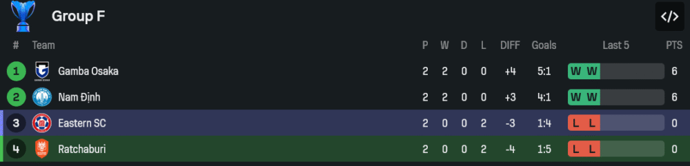 ทีมจากฮ่องกงผลงานไม่ต่างกันมากนัก ชนะ 1 แพ้ 5 ยิงได้ 4 เสีย 8 เกมรับยังรั่วแต่แนวรุกถือว่ามีทีเด็ดจากลูกตั้งเตะและเกมริมเส้น โดยเฉพาะ มาร์ตินส์ ที่ยิงไปแล้ว 2 ประตูในรายการนี้ แม้สถิตินอกบ้านจะไม่ดีนักแต่ความเร็วของแนวรุกอาจสร้างปัญหาให้ราชบุรีได้ไม่น้อย