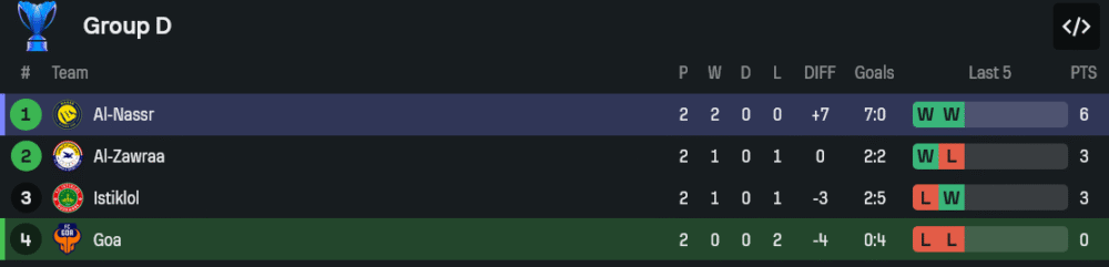 • สกอร์ที่คาด: เอฟซี กัว 0-2 อัล นาสเซอร์