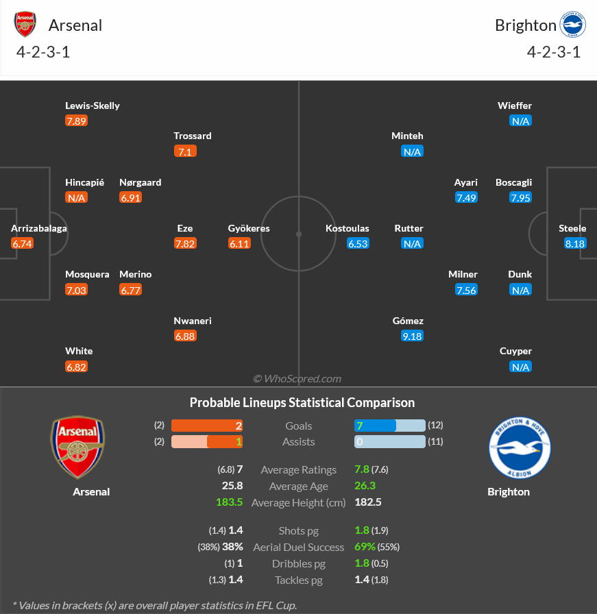 • สกอร์ที่คาด: อาร์เซนอล 2-0 ไบรท์ตัน