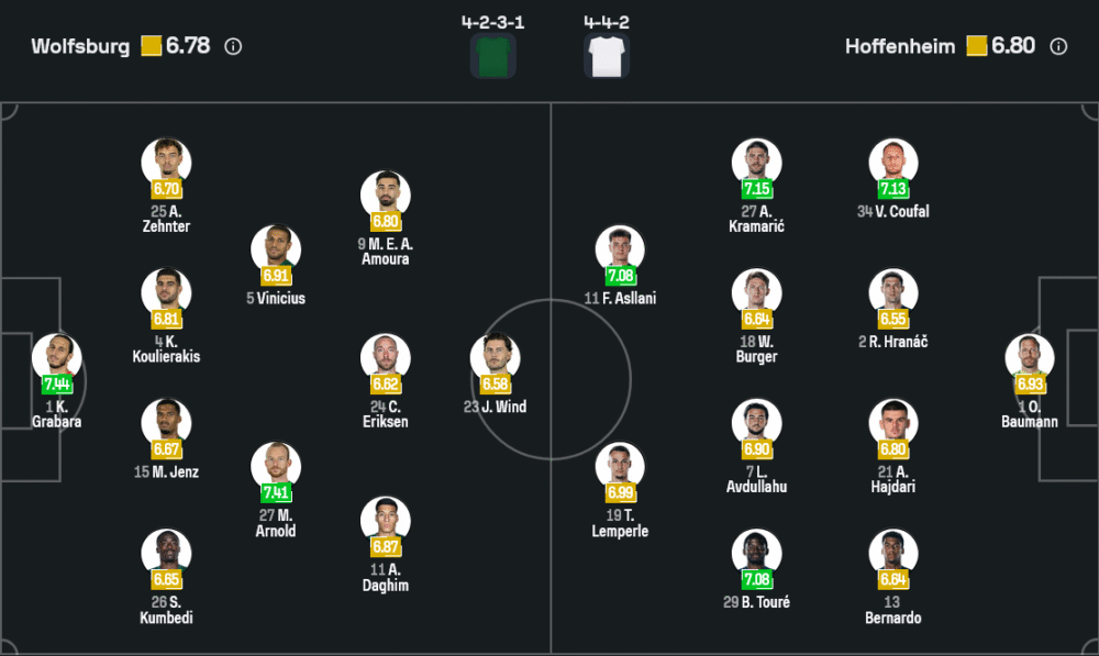 จากภาพไลน์อัพล่าสุด “หมาป่า” วางเกณฑ์เกมรุกค่อนข้างจัดจ้าน ผู้เฝ้าเสาคือ คามิล กราบาร่า แนวรับสี่คนมี ซาเอล คุมเบดี้, มอร์ิตซ์ เยนซ์, แม็กซิมิเลียน อาร์โนลด์ และ อารอน เซห์นเตอร์ กลางคู่รับส่งงานกับเกมรุกใช้ วินีซิอุส ซูซ่า คุมจังหวะร่วม คริสเตียน อีริคเซ่น โดยมีสามตัวรุกยืนหลังหอกประกอบด้วย อดัม ดักฮิม, โมฮาเหม็ด อามูร่า และตัวเชื่อมสำคัญ โยนาส วินด์ ที่พร้อมขยับลงมารับบอลเพื่อสร้างพื้นที่ให้เพื่อนสอดทะลุ ริมเส้นมีสปีดและดุดัน จุดต้องระวังคือการเสียสมาธิในช่วงโดนสวนกลับเร็วซึ่งเป็นรอยรั่วที่โดนลงโทษมาหลายครั้งยามเล่นในบ้าน