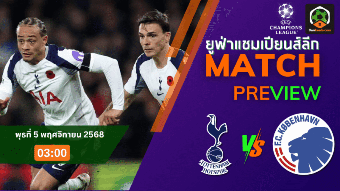 ฟุตบอล ยูฟ่า แชมเปียนส์ลีก คืนนี้มีเกมใหญ่ที่น่าจับตามอง เมื่อ “ไก่เดือยทอง” ท็อตแน่ม ฮ็อตสเปอร์ ทีมดังจากพรีเมียร์ลีกอังกฤษ เตรียมเปิดสนาม ท็อตแน่ม ฮ็อตสเปอร์ สเตเดี้ยม รับการมาเยือนของ เอฟซี โคเปนเฮเก้น ยอดทีมจากเดนมาร์ก แข่งขันกันในคืนวันพุธที่ 5 พฤศจิกายน 2568 เวลา 03:00 น. ตามเวลาประเทศไทย แฟนบอลติดตามความเคลื่อนไหวได้ผ่าน ตารางบอลวันนี้ ที่อัปเดตความพร้อมก่อนเกมครบทุกมุมมอง ราคาบอลล่าสุดเปิดให้เจ้าถิ่นต่ออยู่ที่ 1.25 ลูก ซึ่งถือว่าเป็นเรตที่ต้องลุ้นเหนื่อยพอสมควร