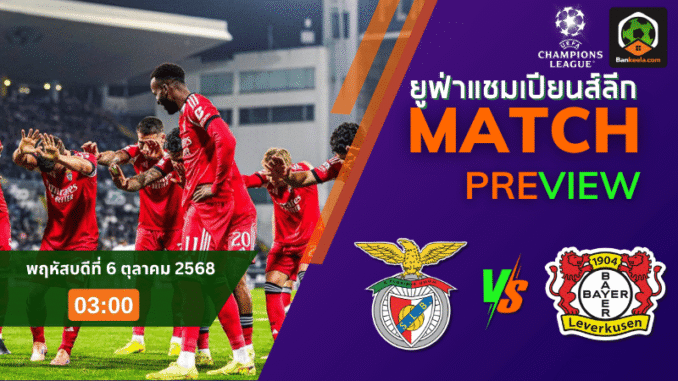 ศึก ยูฟ่า แชมเปียนส์ ลีก กลับมาระเบิดความมันส์กันอีกครั้งในคืนวันพฤหัสบดีที่ 6 พฤศจิกายน 2568 เมื่อ เบนฟิก้า จากโปรตุเกส เตรียมเปิดบ้านที่ เอสตาดิโอ ดา ลุซ รับการมาเยือนของ ไบเออร์ เลเวอร์คูเซ่น จากเยอรมัน เวลา 03:00 น. โดยในเกมนี้ เบนฟิก้า ถูกมองว่าเป็นทีมที่เหนือกว่าในแง่ของฟอร์มการเล่นและความแข็งแกร่งในบ้าน ราคาบอลวันนี้เปิดให้ เบนฟิก้า ต่อ 0.5 ซึ่งแม้ว่าจะเป็นราคาที่ไม่สูงมาก แต่นั่นก็สะท้อนถึงความแข็งแกร่งของ เบนฟิก้า ที่จะพยายามเก็บสามแต้มให้ได้ในบ้านของตัวเอง
