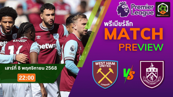 ส่วนเบิร์นลี่ย์จะมาในโมดป้องกันลึก เน้นปิดช่องระหว่างไลน์ ใช้เซ็ตพีซและจังหวะสวนกลับเล่นงาน จุดที่ได้เปรียบคือสภาพร่างกายที่ค่อนข้างสด และการไม่มีอะไรจะเสียในฐานะทีมเยือน ชัดเจนว่าพวกเขาพร้อมเปิดหน้าแลกทันทีหากเห็นจังหวะจากความผิดพลาดของเจ้าถิ่น เพราะฉะนั้นรูปเกมโดยรวมมีแนวโน้มเป็นเวสต์แฮมบุกล้อม แต่เบิร์นลี่ย์คอยสวนหมัดงามๆ กลับมา เป็นเกมที่ใครพลาดก่อนอาจโดนลงโทษทันที