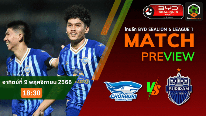 ศึกเดือดไทยลีก! ชลบุรี เอฟซี ปะทะ บุรีรัมย์ ยูไนเต็ด เกมใหญ่สะเทือนตารางบอลวันนี้