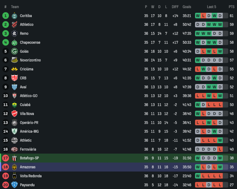 ศึกบอลลีก คัมปิโอนาโต บราซิเลียโร ซีรีบี คืนวันอังคารที่ 11 พฤศจิกายน 2568 เวลา 05.00 น. ที่สนามเอสตาดิโอ ซานตา ครูซ แฟนบอลเตรียมเช็ก ตารางบอลวันนี้ แล้วตั้งปลุกรอได้เลย เมื่อเจ้าถิ่นอย่าง โบตาโฟโก้ เอสพี ทีมอันดับ 17 เปิดบ้านรับมือคู่แข่งโดยตรงในโซนล่างคือ อมาโซนาส ทีมอันดับ 18 เกมนี้ไม่ใช่แค่เรื่องศักดิ์ศรี แต่คือแมตช์ชี้ชะตาเส้นทางรอดตกชั้นของทั้งสองสโมสรโดยตรง เรต ราคาบอล จากหน้ากระดานเปิดมาให้เจ้าบ้านต่อเบาๆ 0.25 ลูก แต่บรรยากาศในสนามเชื่อได้เลยว่าไม่มีคำว่าเบาแน่นอน
